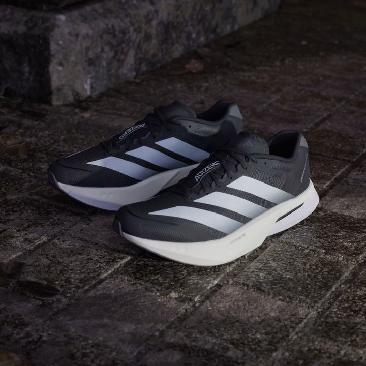 The new Adizero Boston 13 – the pinnacle training shoe in the Adizero franchise – is updated with 13.8% more Lightstrike Pro midsole foam compared to its predecessor, resulting in a softer and more comfortable underfoot feeling. Alongside its signature re engineered Energy Rods, the revamped mesh upper delivers lightness breathability and targeted support. New to Boston models, the LIGHTTRAXION outsole – first seen in Adios Pro 4 – is designed to reduce weight without sacrificing grip.