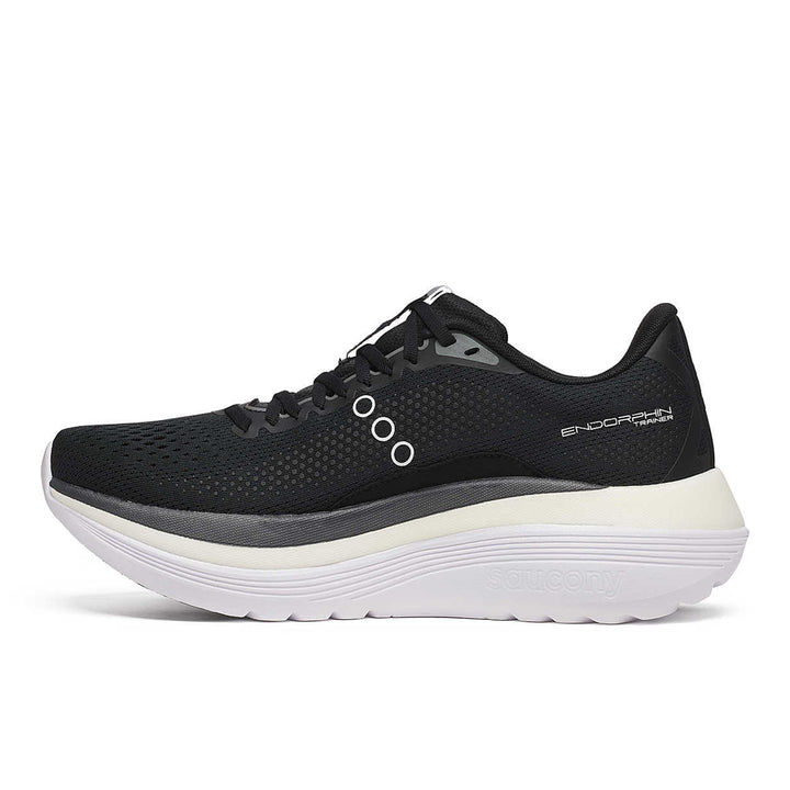 The Endorphin franchise expands with a high-tech training powerhouse. Built for runners who demand both speed and durability, the Endorphin Trainer running shoe brings race-day innovation to everyday training. At its core, a top layer of IncrediRUN superfoam—our lightest, most responsive midsole—pairs with a durable bottom PWRRUN layer to create an ultra-stable, energy-efficient platform. A ¾-length carbon fiber plate, tuned specifically for training, works with Speedroll Technology to propel you forward, ensuring smooth transitions and effortless toe-offs. The result? A shoe that harnesses cutting-edge innovation to make high-mileage weeks and everyday training feel smoother, faster, and more efficient.