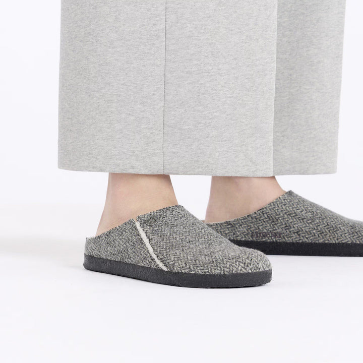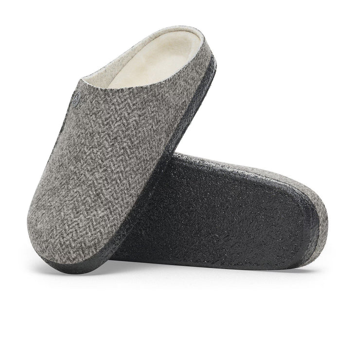 Cozy up to wool and shearling. The Zermatt slipper gives you an elevated indoor option in wool herringbone, lined in genuine shearling for a soft landing every time. An original cork-latex footbed gives you the support you need, with a latex rubber sole for room-to-room traction.